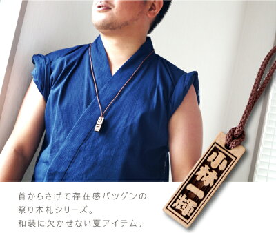 首からさげて存在感バツグンの 祭り木札シリーズ。