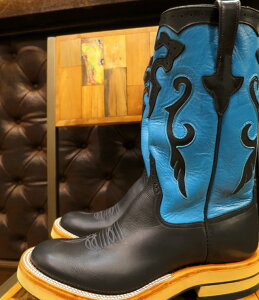 SPEC RIOS OF MERCEDES MEN’S BOOTS MADE IN U.S.A Vamp: BLACK HORSE BUTT Top: ALTAIC BLUE KIDSKIN Height: 11inch Scallop: SHALLOW Collar: MORGHN BLACK HORSE BUTT Toe: ROPER B&W: STANDARD BLACK STITCHING SS/TT: BLACK Pulls:FRENCH BLACK HORSE BUTT Welt: color;NATURAL Sole Stitch: color;WHITE Sole Edge: color;CLEAR Sole: BROWN CREPE WITH/ BLACK SOLE SAVOR Heel: ROPER Heel Cap: BLACK Width: Men’s E or D ↑※着用画像は2015年別注分の画像です。
